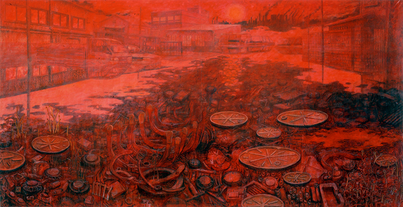 Green House Effect, 2001, oil on canvas, 227 x 444 cm, 90 x 175 inches. Fukushima Museum of Art collection.