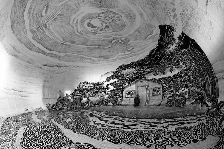 Oiwa Island 22013-2016, marker pen drawing on immersive balloon. Setouchi International Art Festival, exhibited in Ibuki Island (2013) and Shodo Island (2016) and Shimi Island (2019), Kagawa.