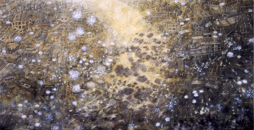 Gardening (Way to Peace), 2003, oil on canvas, 227 x 444 cm / 90 x 175 inches, The National Museum of Modern Art, Tokyo collection