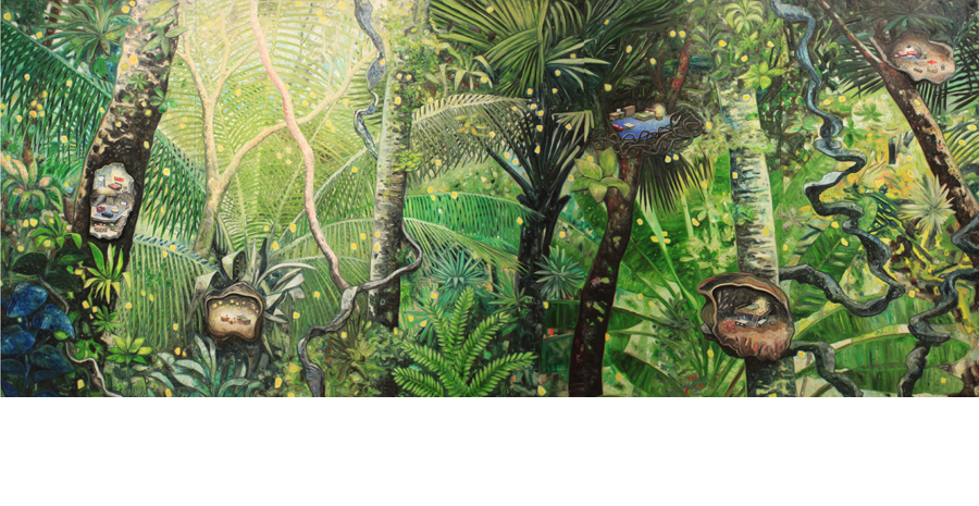 Five Nests, 2012, oil on canvas, 227 x 555 cm / 90 x 220 inches, Kanazawa 21st Century Museum of Contemporary Art collection