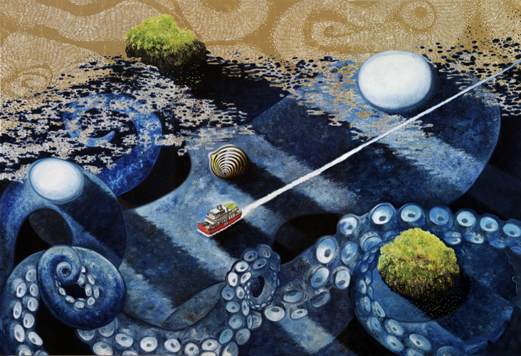, 2015, gold leaf and oil on canvas, 227 x 333 cm / 90 x 132 inches