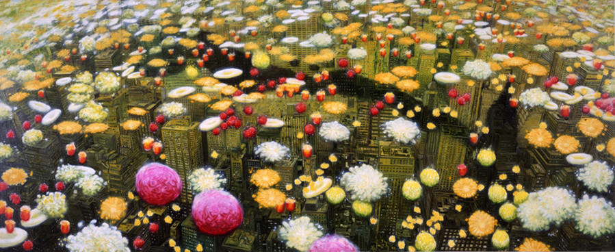 Gardening (Manhattan), 2002, oil on canvas, 227 x 555 cm / 90 x 220 inches. |