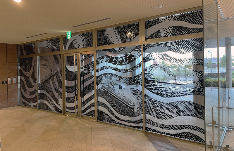 Traveling around the World, 2021, several drawings around the building. Commission work to JICA-Japan International Cooperation Agency, Yokohama.
